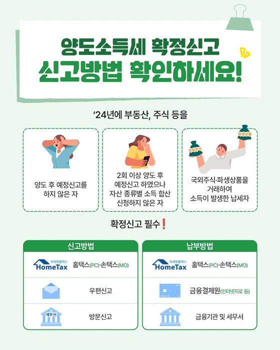 2024년에 부동산이나 주식 등을 처분한 사람 중 일부는 2025년 5월 말까지 양도소득세 확정신고를 반드시 해야 합니다.
