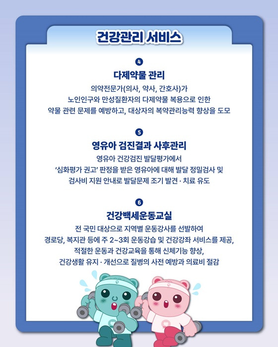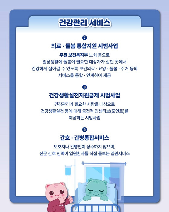 단순한 치료를 넘어, 국민의 전 생애 건강관리를 위한 다양한 서비스가 제공됩니다.